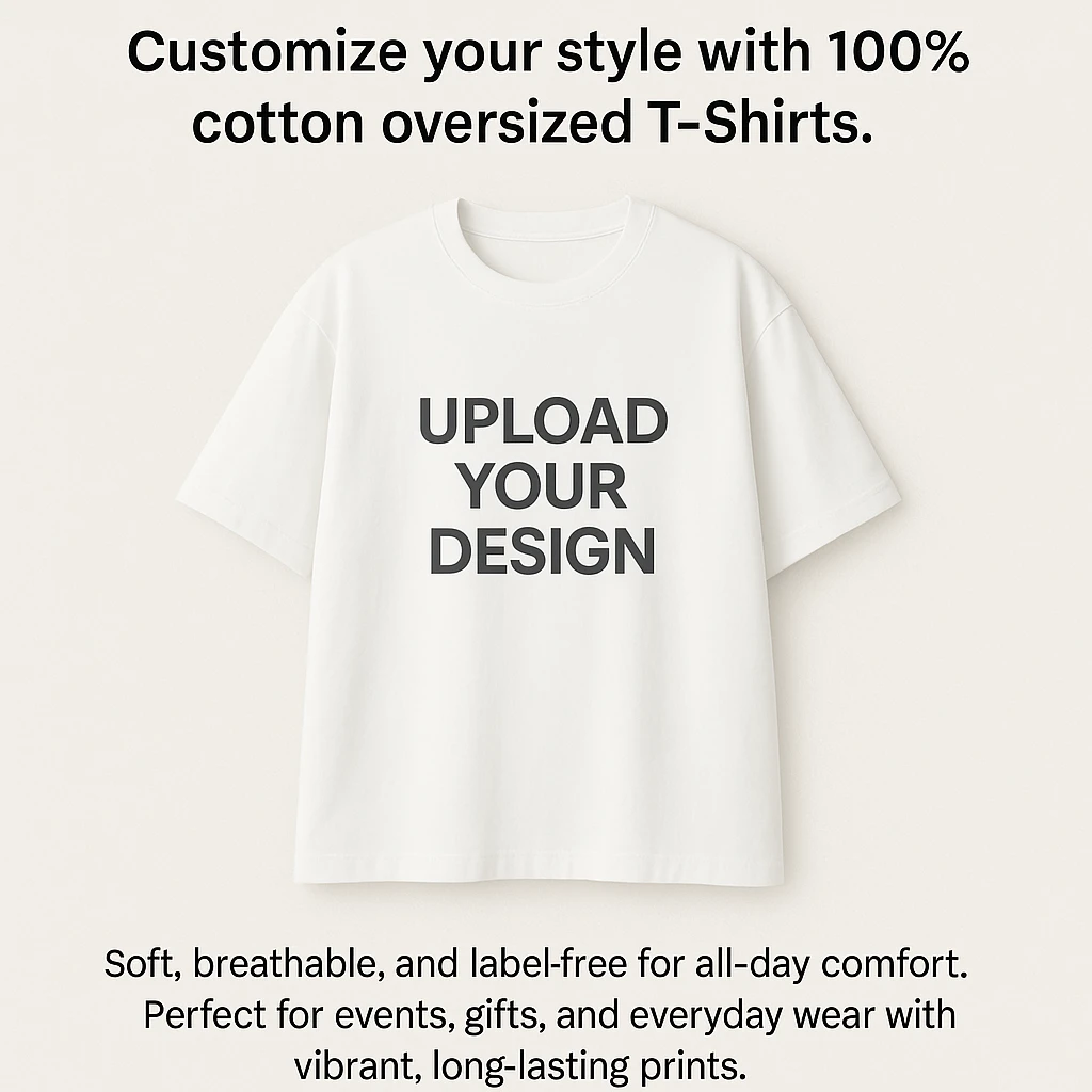 ShippingCustomize your style with 100% cotton oversized T-shirts. Soft, breathable, and label-free for all-day comfort. Perfect for events, gifts, and everyday wear with vibrant, long-lasting prints.